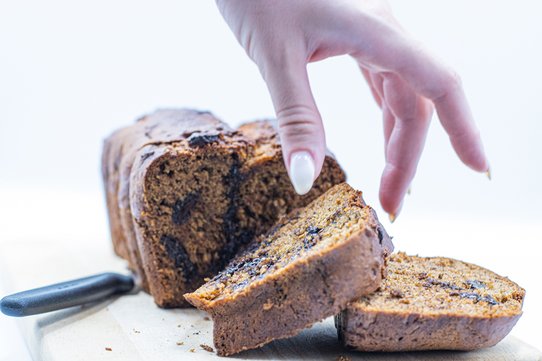 Ομογενοποιούμε όλα τα υλικά έως να αποκτήσουν τη μορφή παχύρευστου χυλού και τότε προσθέτουμε τη σοκολάτα. Βάζουμε το μείγμα σε μία φόρμα σιλικόνης και ψήνουμε για 40-50 λεπτά στους 180oC (ανάλογα τον φούρνο).